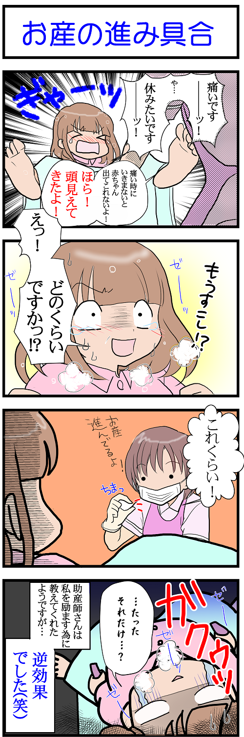 2015年11月26日 ⑬産んで最初に思ったこと(第1子) 第1子出産話を思い出しながら4コマ漫画にしています。前回の記事の続きです。股に赤ちゃんの頭が挟まって激痛が走った!ドラマティックじゃなくてすみません(;^_^A でも本当にそう思いました。お腹の中にかわいい我が子がいることはもちろん分かっていたのですが…その姿を カテゴリ : 『妊娠出産』編第1子出産編