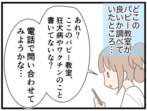 2019年06月16日 25.パピー教室(しつけ教室)が決まる はじめましての方は→コチラ。第1話はこちら!前回の第24話はこちら!パピー教室が決まりました!次回からはパピー教室のことも描いていきたいと思います。続きます。▼その他のエピソードはこちら。初めてうつ病になった話の第1話はコチラ。産後にうつ再発編の第1話はコチラ カテゴリ : チワワを迎えた話愛犬の避妊手術編