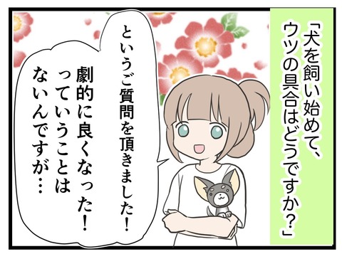 2019年06月26日 28・ペットを飼ったら鬱が良くなった? はじめましての方は→コチラ。『犬、飼い始めましたシリーズ』の第1話はこちら!前回の27話はこちら!【犬、飼い始めましたシリーズ】は今回でとりあえず締め括ろうと思います。病状自体は何も変わらずです。過去の嫌な事を思い出しては気持ちが沈んだり、(忘れて切り替えれ カテゴリ : チワワを迎えた話最近の私のうつ病