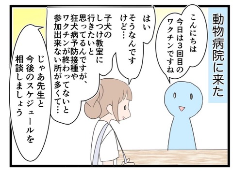 2019年06月15日 24・犬、飼い始めました!(予防接種のスケジュール) はじめましての方は→コチラ。第1話はこちら!前回の第23話はこちら!この日は2回目のワクチンから3週間後で、3回目のワクチンの予定でした。しつけ教室に通いたいと相談したところ、「1週間後に狂犬病予防接種を打って、その1週間後に3回目のワクチンを打った方が最短で済み カテゴリ : チワワを迎えた話愛犬の避妊手術編