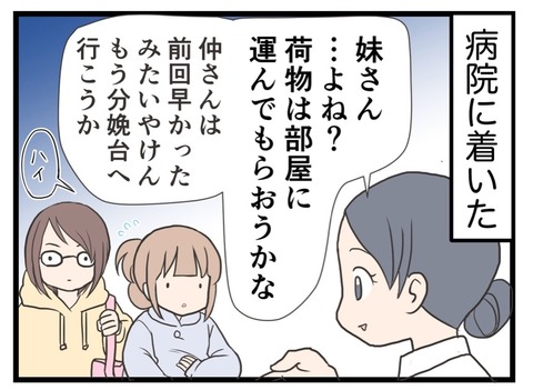 2019年12月05日 ⑧私のお産、そんなに速いですか?【第2子出産編】 はじめましての方は→コチラ。第1子出産編の第1話はコチラ。第2子出産編の第1話はコチラ。前回はコチラ!陣痛が始まって、妹の運転で病院へ!助産師さんは私の前回のカルテを見て今回も早いと判断したのか、すぐに分娩台に横になりました。(前回の来院時の状況はコチラ。) カテゴリ : 『妊娠出産』編第2子出産編